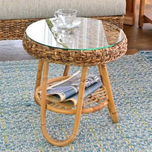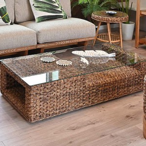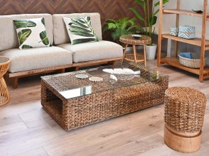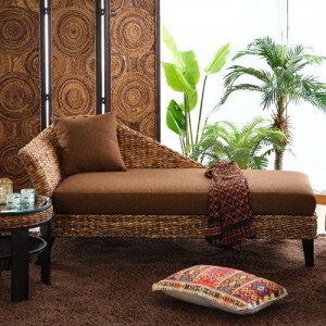 アメ色にいぶしたバナナの葉を編み込んで、ざっくりとした素材感とハンドメイド仕上げで温かみのある風合いがお部屋を南国リゾートの賑やかで開放的な雰囲気に。