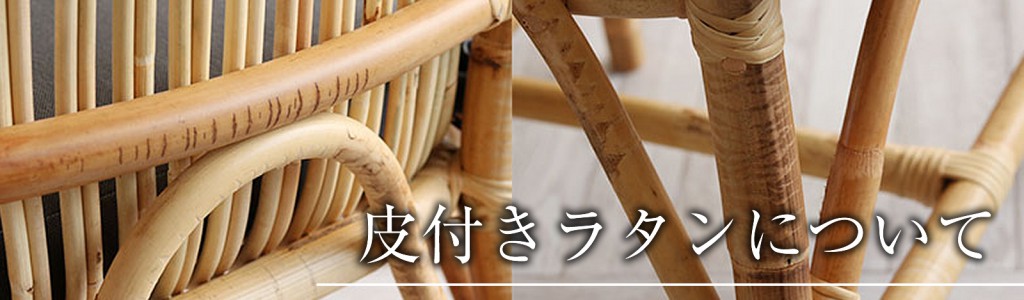 もともとの材料の自然な色合いにより、第一印象で“皮付きラタン”の製品が通常のラタン製品より品質が悪い物に見えてしまうことがありますが、“皮付きラタン”の製品につきましても他の製品と同様の品質で生産しておりますのでご安心ください。