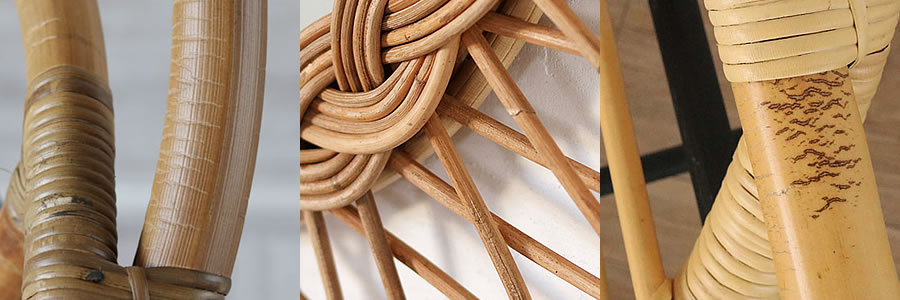 ラタン(籐)には竹のような節があります。製品加工時に節を削った後や、自然の黒斑が残る事がありますが、これは品質不良ではございませんのでご了承ください。