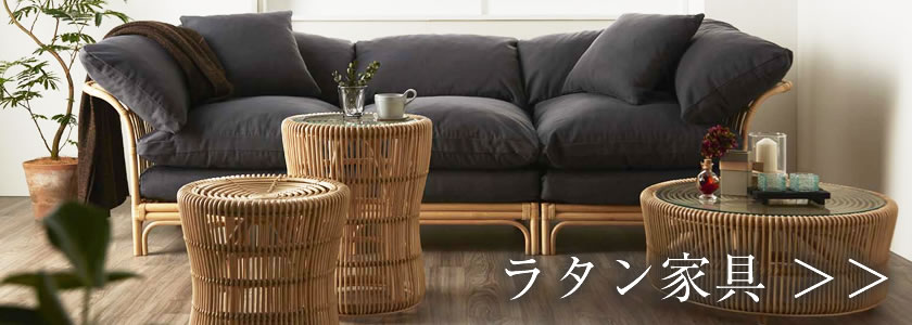 ・ラタン(籐)は天然素材ですので、乾燥や直射日光を嫌います。そのような場所でのご使用はなるべく避け、時々濡れた雑巾を固く絞って拭いてください。