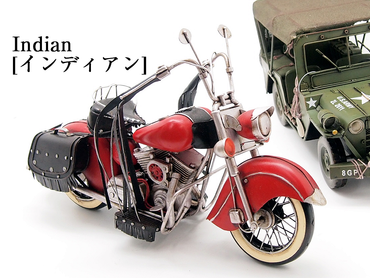 ブリキの素朴感がかっこいいアンティークな風合いのアメリカンバイク、インディアンモデル。