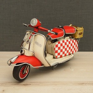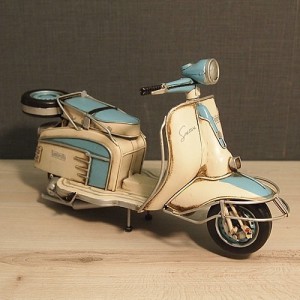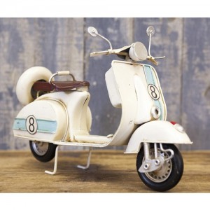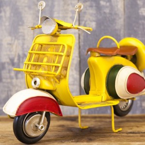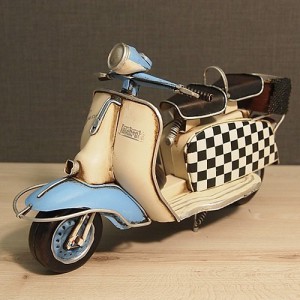 ブリキの素朴感がかっこいいアンティークな風合いのバイク、ベスパ(Vespa)スクータータイプは定番の人気のモデル。