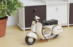 ブリキの素朴感がかっこいいアンティークな風合いのバイク、ベスパ(Vespa)スクータータイプは定番の人気のモデル。