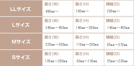 当店で販売中の商品サイズは、大きく分類すると【LLサイズ】【Lサイズ】【Mサイズ】【Sサイズ】の4種類のサイズ展開となっております。