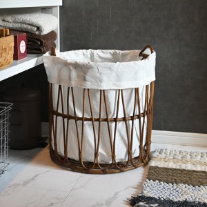 天然素材のラタンを使用した、ナチュラルテイストの優しさと温かみ溢れる風合いのランドリーバスケット。