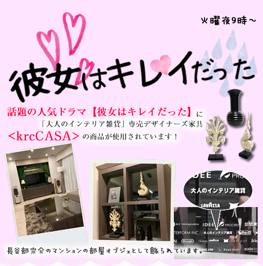 「大人のインテリア雑貨」専売デザイナーズ家具「krcCASA」の商品が 中島健人さん演じる長谷部宗介のマンションの部屋オブジェとして使用されています。